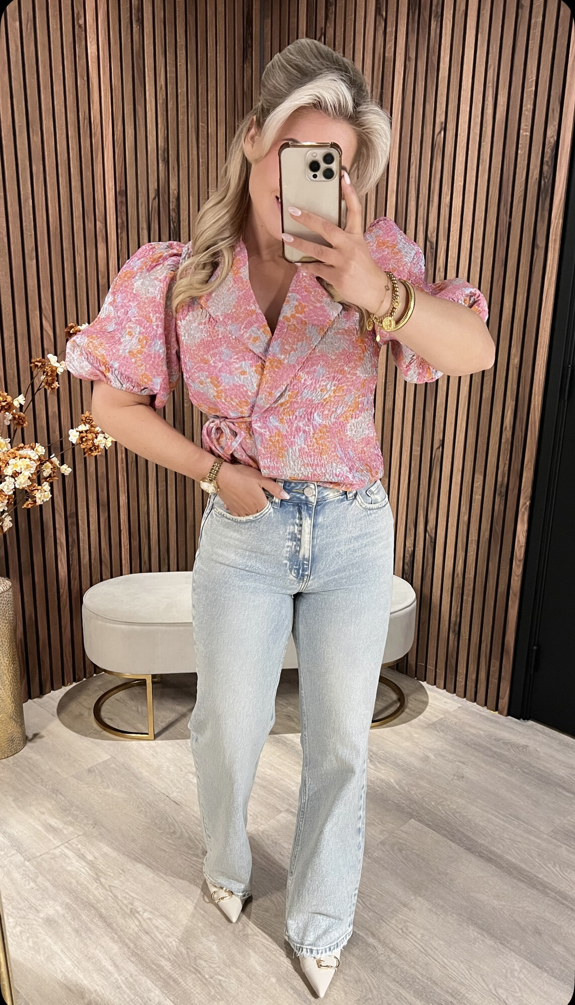 Dit is een omslag blouse die aan de zijkant gestrikt moet worden
