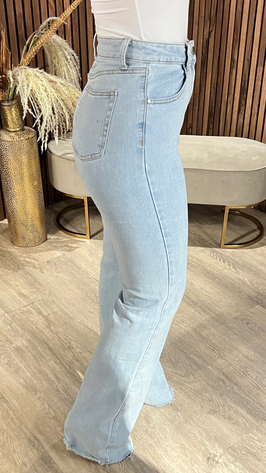 Het is een lange broek die je zelf indien nodig gemakkelijk kan inkorten met een goede schaar.